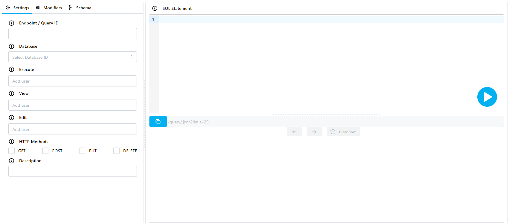 Using the Query Studio, users can write and test SQL queries, and configure options such as the database it runs on and the users who may access it. Queries can be configured to accept SQL parameters through their REST endpoints or in the HTTP request body. The queries and their configurations are stored on the SlashDB server.