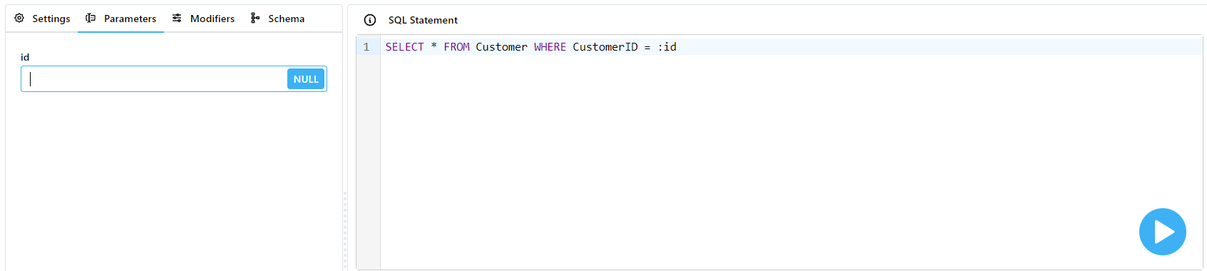by toggling the NULL button on the parameter field. On execution, the query will be executed with the values you provided.