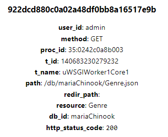 - the t_id (thread ID) of the SlashDB worker that handled the request