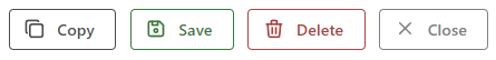 Actions such as saving or deleting a configuration are performed using the row of buttons in the top right corner of the screen. Some buttons may not be enabled depending on the user's privileges.