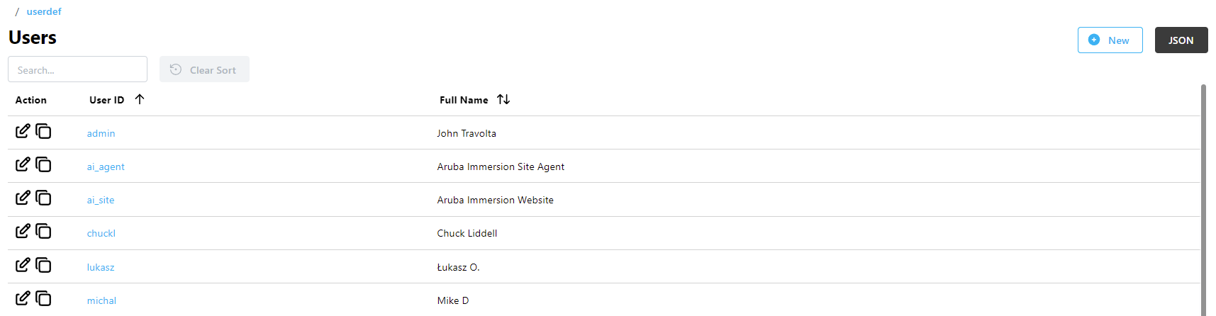 You can also clone an existing user account to a new one using the Copy action, or the Copy button on the user configuration screen.