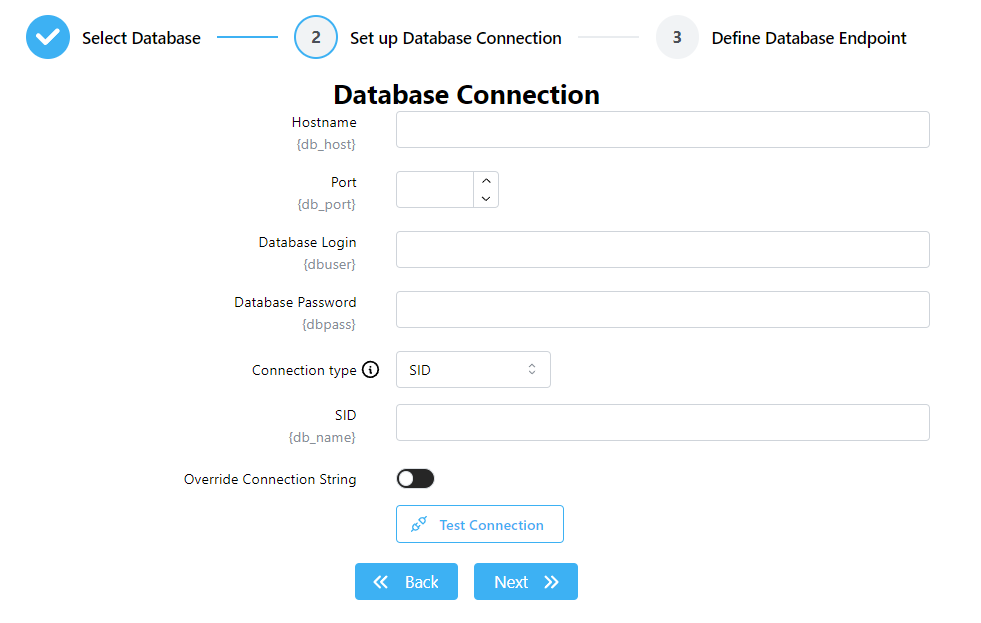 (Oracle configuration uses an SID or Service Name, use the Connection type dropdown list to pick)