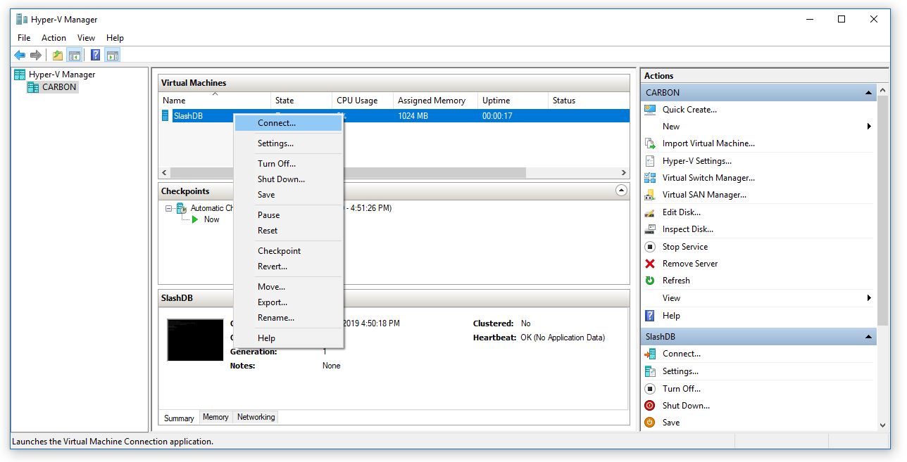 Find just created virtual machine on the list, open context menu with mouse right click and choose Start