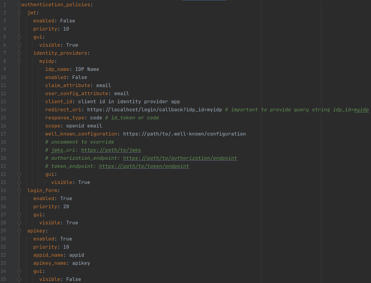 means it will be the first authentication method to try. - gui is a sub-section with properties for configuring the GUI on the login page: