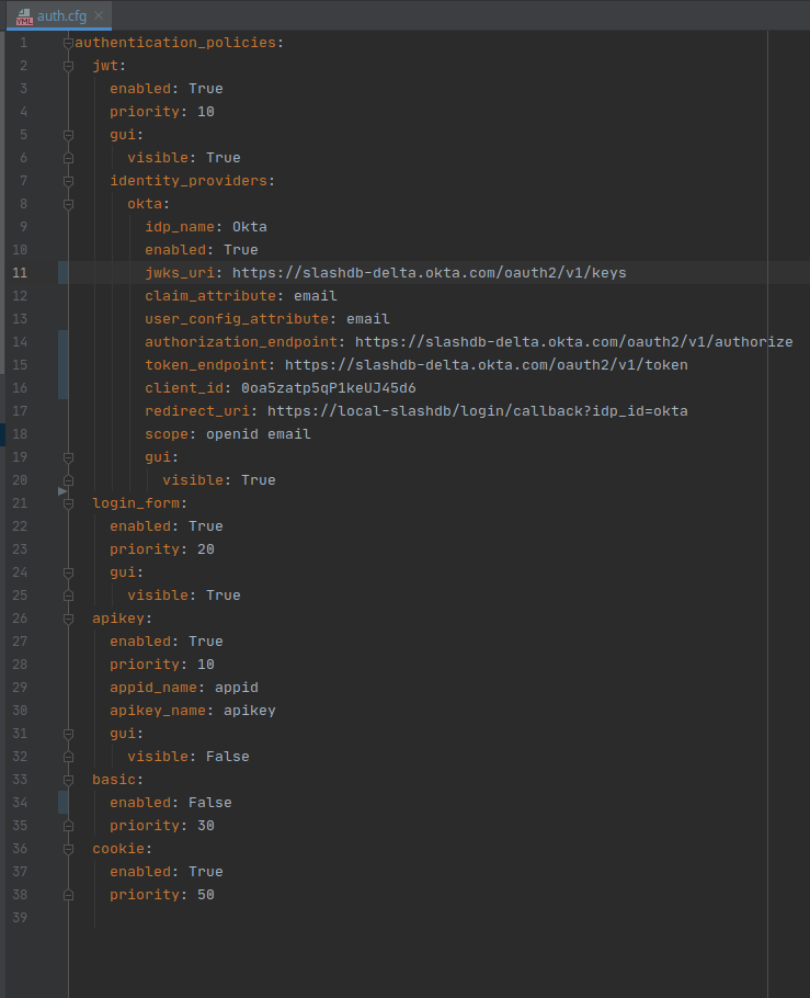 redirect_uri: https://slashdb_host/login/callback?idp_id=myidp # important to provide query string idp_id=myidp