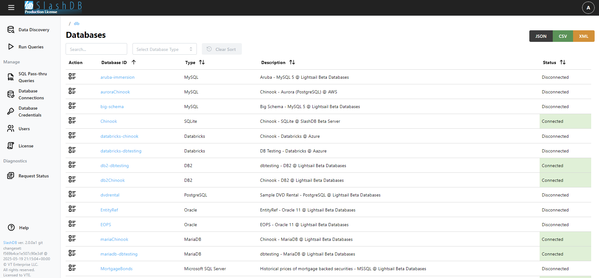 - Data Discovery allows users to explore and access the databases connected to SlashDB. Records can also be created or updated by authorized users or applications.
