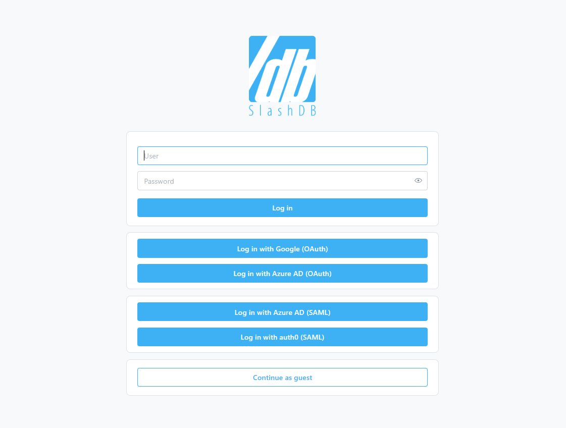 Click the Log In button. You will be presented with a login form with username and password fields for local accounts. If you have configured Single Sign On, you may see additional buttons to login with different SSO providers.