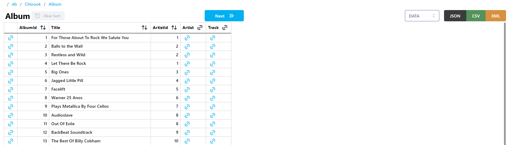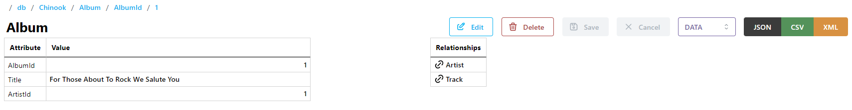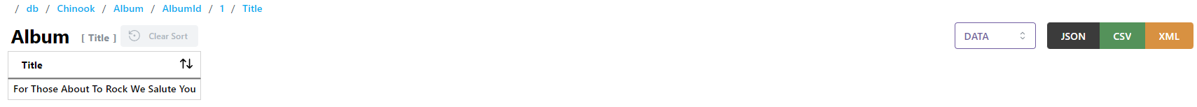 /db/Chinook/Customer.json?limit=2 - get the Chinook Customer table records in JSON format: