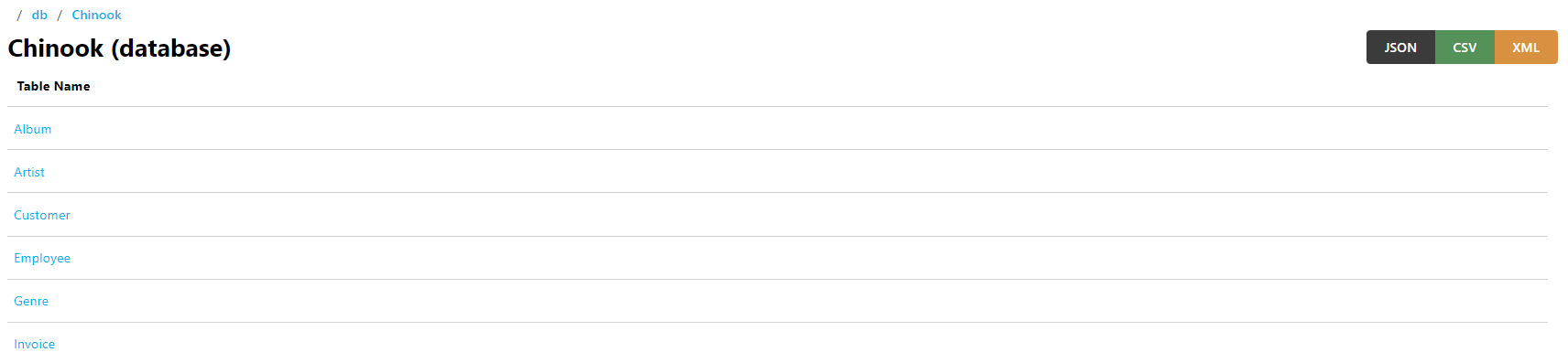/db/Chinook.json - get the table list for the Chinook database in JSON format:
